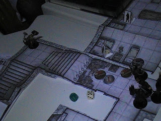 - O combate no pátio foi o mais mortífero para os heróis. Ele começou simples, um rastejador de carniça apareceu de seu esconderijo e tentou atacar o grupo, mas ele foi morto pela chuva de golpes e magias desferidas pelos aventureiros que ele durou apenas um turno no combate. O problema aconteceu no segundo turno que chegaram as harpias, seus cantos tinham efeitos devastadores nos heróis, foi com MUITO esforço que eles conseguiram derrotá-las.